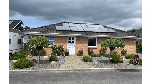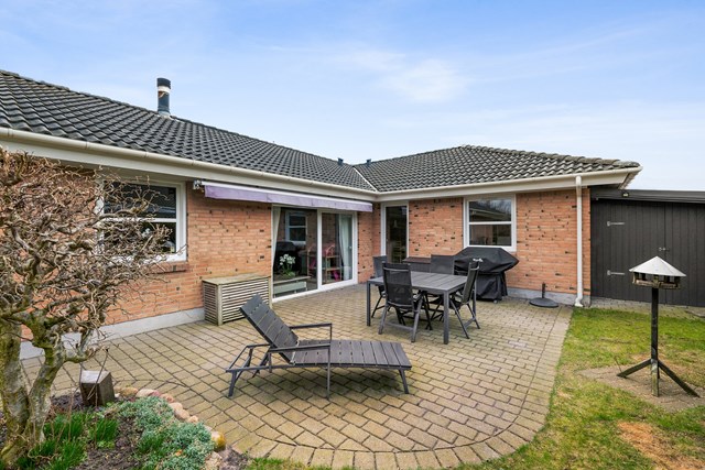 Udenfor er der gode parkeringsmuligheder i fliseindkørsel eller carport, samt 5 kW solceller på taget. Haven er indhegnet og har vestvendte terrasser med udsigt til det fredede naturområde.