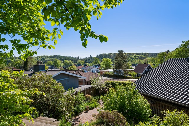 Den smukke ejendom, opført i 1985, byder på en unik charme, som ifølge ejendomsmægleren ikke findes i nybyggeri. Med en udsigt over det omkringliggende område fra øverste plateau i haven og flere niveauer både indenfor og udenfor, tilbyder huset en særlig atmosfære.
