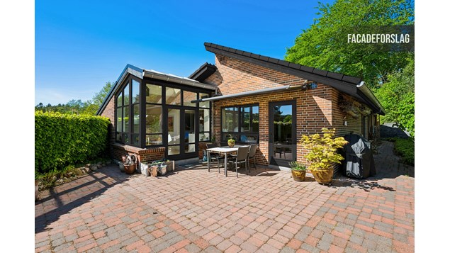 Det tidløse hus er pænt vedligeholdt og indrammet af en arkitekttegnet villa med smuk udsigt over nærområdet fra øverste plateau i haven. Her kan du altid finde en rolig lækrog eller en siddeplads i solen og nyde livet i den dejlige gårdhave under markisen.