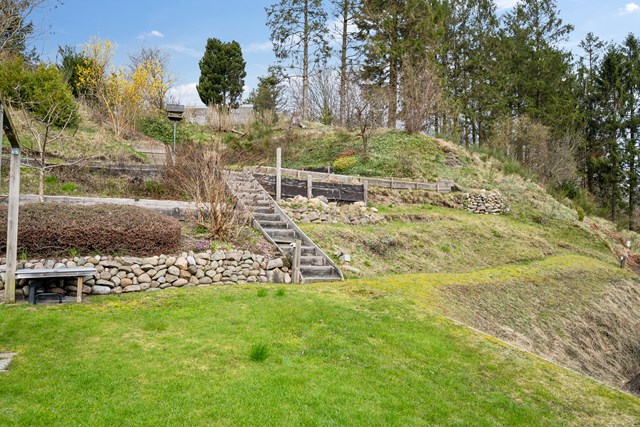 Udendørsfaciliteterne er også fremragende, især for dem med grønne fingre. Der er en carport fra 2017, et praktisk haveskur og en have i flere niveauer med en fantastisk udsigt over området. Her er der rig mulighed for at anlægge køkkenhave eller blot nyde solen fra havestolene.