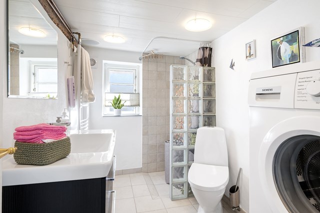 Huset har moderne komfort fordelt over 112 m² og to etager, med en smuk historisk stemning og fine detaljer. Stueplan inkluderer køkken, alrum og stue, et disponibelt rum med skab og et flisebadeværelse fra 2015. Køkkenet er opgraderet i 2001 og har alt i hårde hvidevarer sammen med et flot flisegulv.
