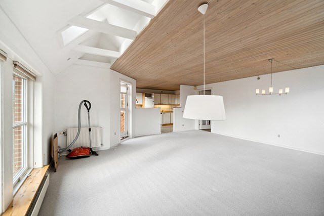 Fra stuen er der direkte adgang til en skøn flisebelagt terrasse, der er afskærmet og omgivet af smuk beplantning. På loftet finder man et disponibelt rum, der kan tilpasses efter dine behov.