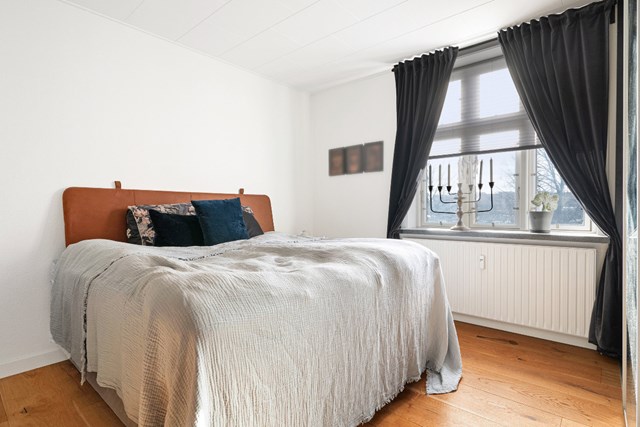 Gulvene er pæne, og særligt stuen og soveværelset tager sig flot ud med brede nyere plankegulve. I det hele taget er rumfølelsen rigtig god, for lejligheden er skruet godt sammen, og dannebrogsvinduer i to og tre fag inviterer lyset ind.