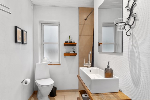 Derudover findes der et toilet med mulighed for at etablere bad, samt mulighed for at indrette en selvstændig lejlighed til flere generationer.