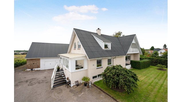 Du vil få en detaljeret rundvisning i villaen, der tilbyder masser af plads både indendørs og udendørs. Ejendommen rummer blandt andet fællesområder, komfortable værelser og et todelt udhus med garage og værksted.