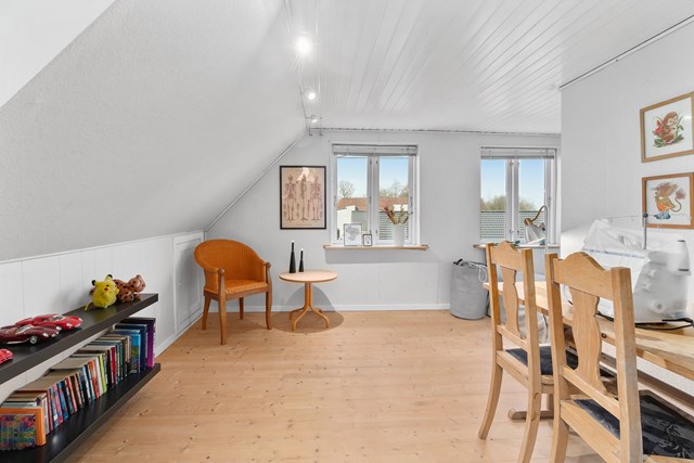 Førstesalen rummer fire værelser, hvoraf tre ligger ovenpå og byder på masser af plads til personlig indretning. Et af værelserne har adgang til et walk-in-closet og en altan.
