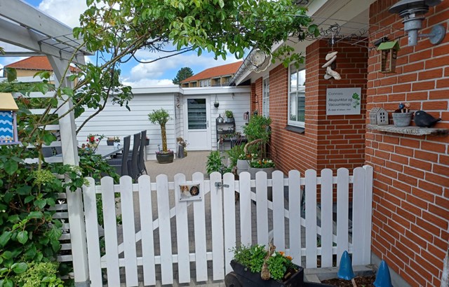 “Jeg startede i et værelse i vores hus. Da vores yngste datter flyttede ud, blev klinikken så udvidet, så jeg nu kan behandle i to rum. Klinikken ligger for sig selv i en del af huset, sammen med en entré og lille toilet.”