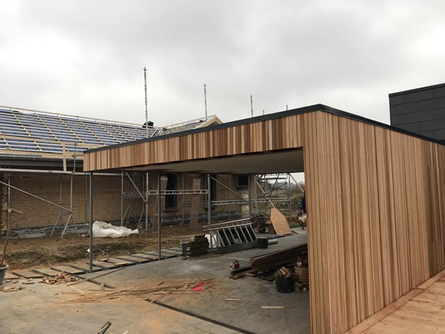 Foto: Facadebeklædning i cedertræ // DLC-BYG
