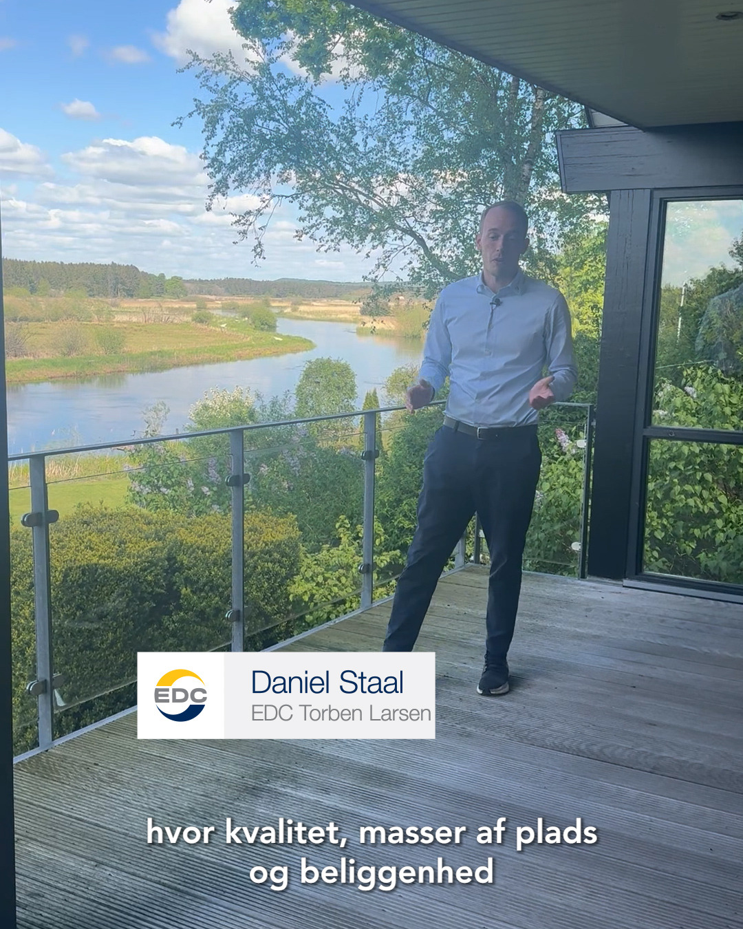 På Skærbækvej 18 venter 220 m² kvalitetsvilla i tre plan med store vinduespartier, hyggelig pejs og tre altaner med panoramaudsigt. Kælderen på 123 m² rummer plads til hobbyliv, og haven leder direkte ned til egen badebro og bådplads