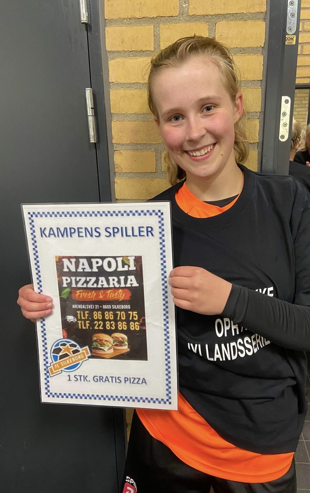 “Kampens spiller blev Esther Sax, som efter kampen modtog et gavekort fra Napoli Pizza i Silkeborg. Esther spillede hele kampen i midterforsvaret, hvor hun leverede en pokkers masse vigtige tacklinger og besad en masse ro og overskud i sit spul med bolden.”