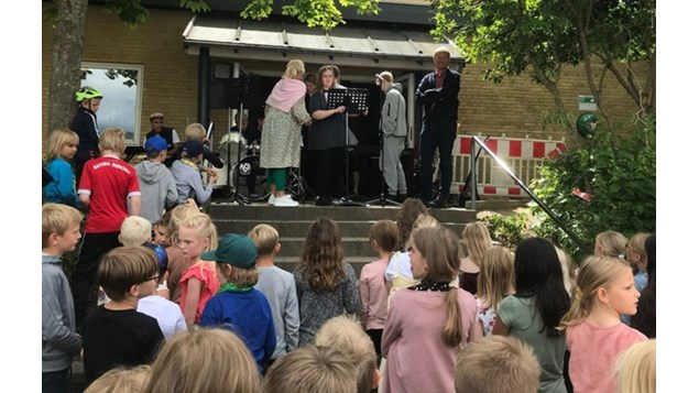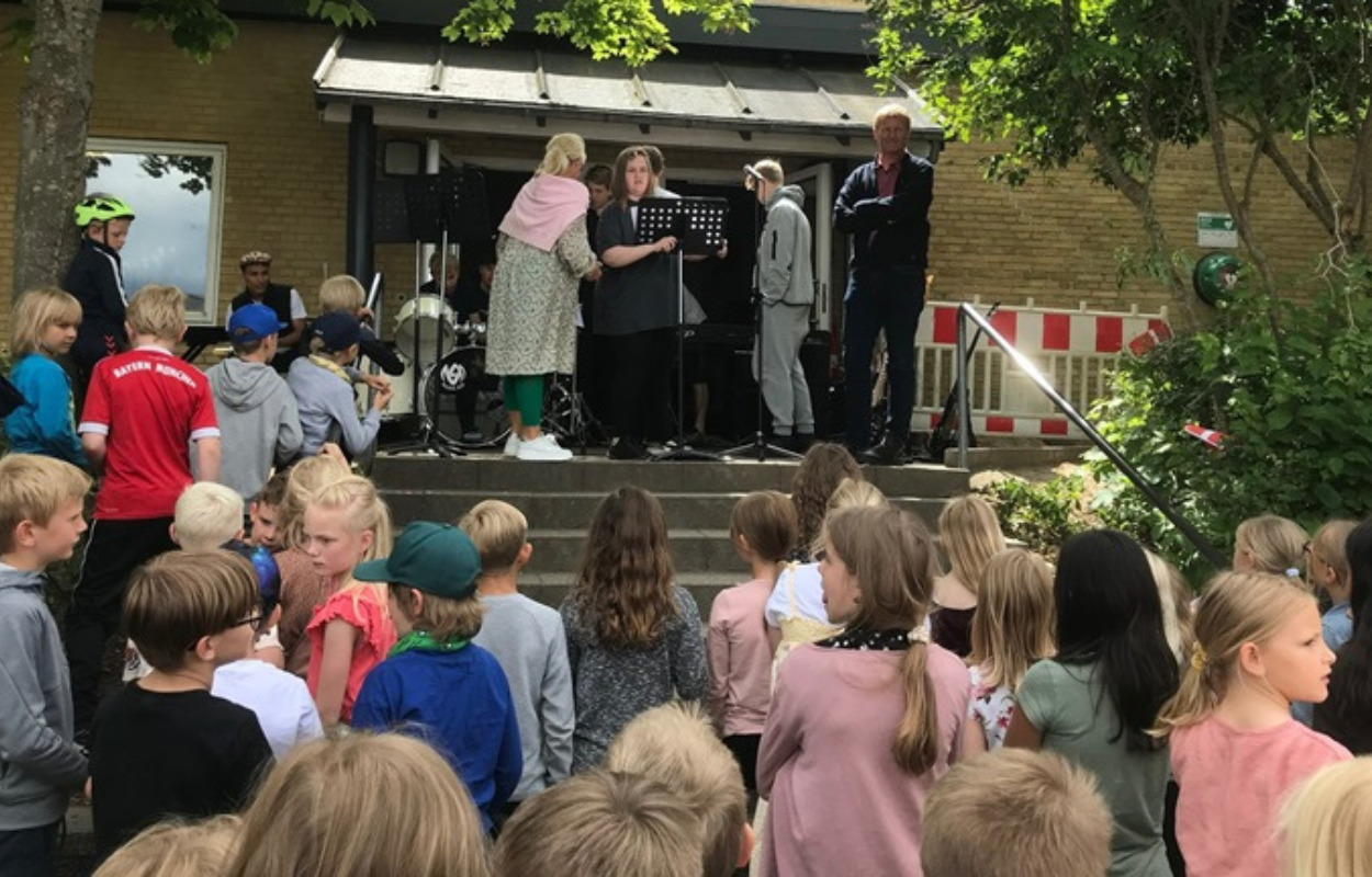 På dagen var alle skolens elever inviteret med, og der blev sunget og spillet sange og holdt taler fra Morten Hæk og Charlotte Juhl Andersen, skoleleder for Funder-Kragelund Skole.