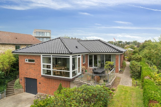 Denne unikke bolig byder på en spændende planløsning, der straks fanger din opmærksomhed. Det imponerende køkken og spisestue åbner op med en panoramaudsigt over vandet og skoven.