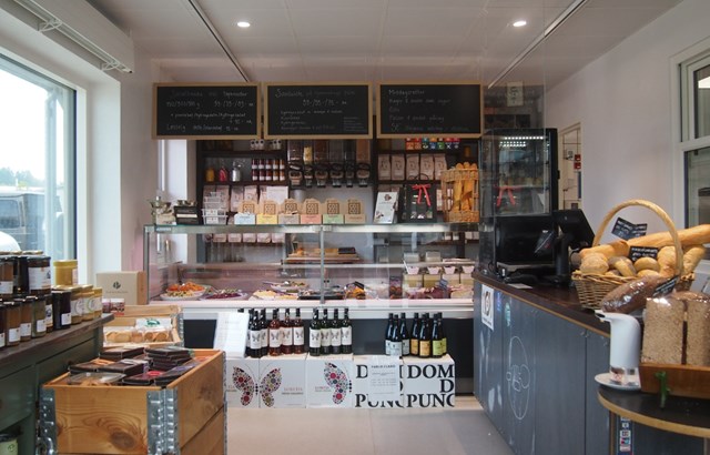 ”Hos os er råvarekvaliteten i top. Vi har 80% danske råvarer og 60% lokale råvarer. Jeg kender de producenter, jeg får varer hos. Og det betyder noget for kvaliteten, men også for de lokale gårdmænd, lokalmiljøet og såmænd også for klimaaftrykket. Og så er vi øko-guldmærket."
