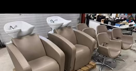 Hvem skal lige have dette flotte sæt fra Luca Rossini i Italien. Et eksklusivt og moderne sæt, der med den champagne farvede look, vil gøre din salon til noget helt speciel. Bemærk, massagevaskene hæver hele sædet op, så kunden slapper helt af, i en mere vandret stilling.