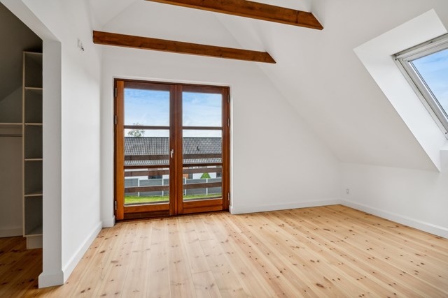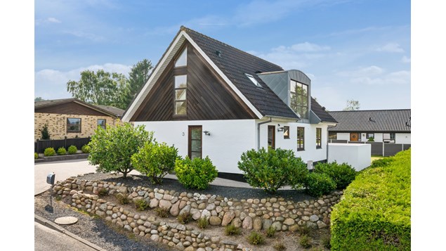 Forældre- og børneafdeling er delt ud på hvert sit plan, og det er ovenpå, at der er walk-in og spabad. Vil I sætte jeres egen finish på de velholdte rammer, kunne det på sigt være at lave en udgang og altan fra førstesalen, hvorfra udsigten bedst kan beskrives som storslået. Fortil er der indkørsel til flere biler, og den skønne have vender mod syd og mod vest. Det betyder gode solchancer i alle dagens bedste timer.