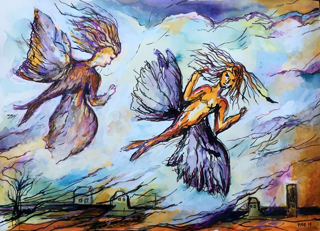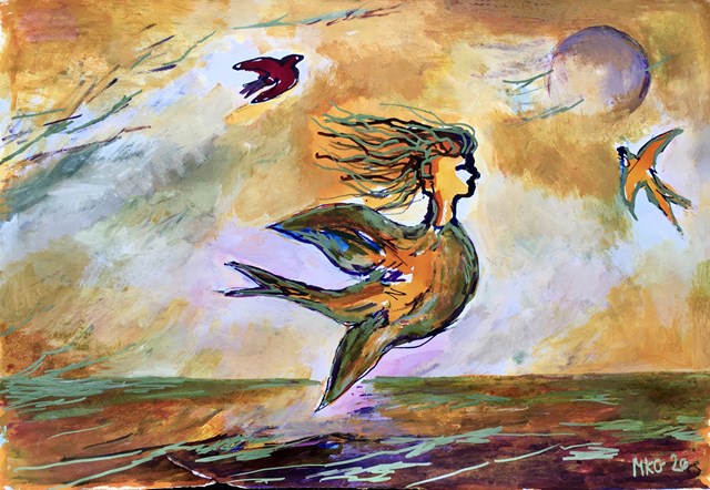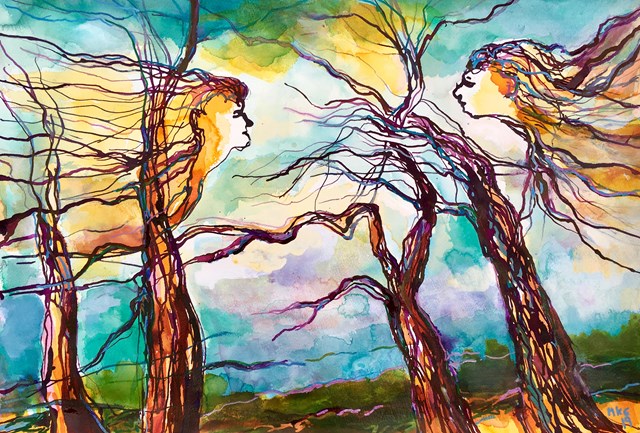 Mange af Miriams tuschmalerier handler om den umiddelbare glæde ved at være til, som de smukke sjæle vi er, hvor vi ikke defineres ud fra vores livshistorier, begrænsninger og bekymringer men finder vej ud fra sjælen og derfra mærker ind i frihed, lethed og glæde.