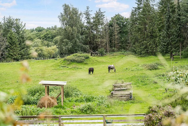 Her finder vi en unik bolig- og erhvervsejendom beliggende på et stort naturareal på 4,9 ha.