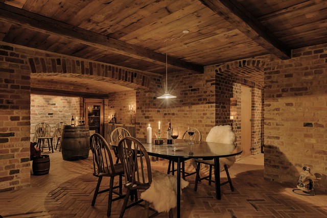 Og vigtigst af alt – en vinkælder, hvor du kan opbevare og nyde dine bedste flasker. De 200-300 år gamle genbrugssten på vægge og gulv skaber en unik atmosfære.