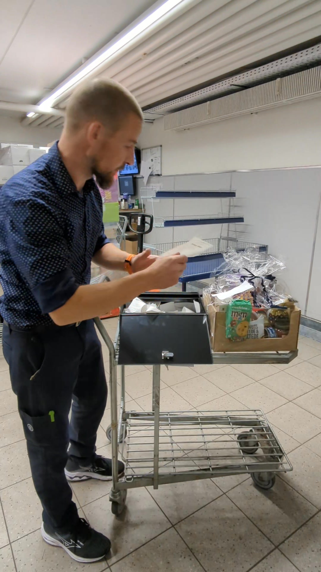 I går en sms, vis den til personalet når i kommer i butikken næste gang, så får i udleveret kurven.