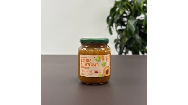 Sig hej til vores REMA 1000 Abrikos & Stikkelsbærmarmelade.