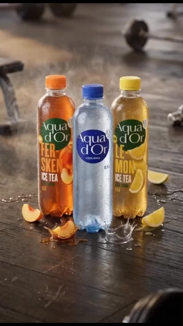 Hold energien oppe før, under og efter din træning med Aqua d’Or Ice Tea Peach, Lemon og klassisk vandhos Silkeborg Fitness Center