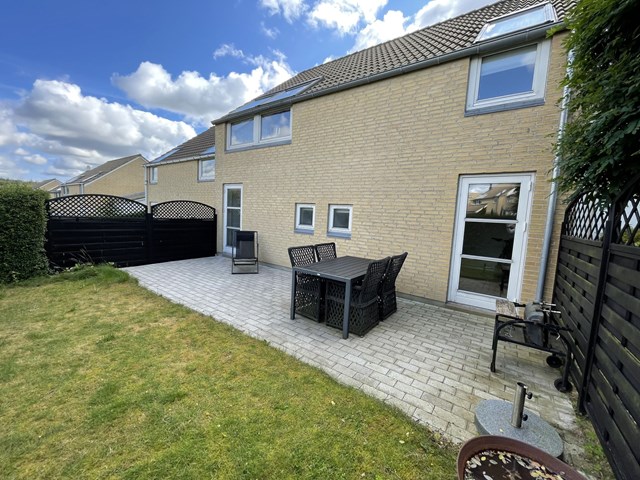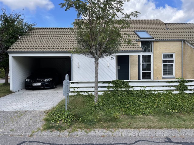 Haven er en fornøjelse med en rummelig terrasse og plads til leg og aktiviteter for børnene. Carporten og udhuset giver praktisk opbevaringsplads til både bilen og haveudstyr, hvilket gør hverdagen nemmere og mere bekvemlig.