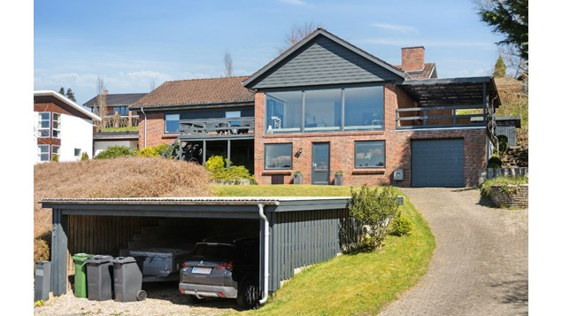 Til boligen er en dejlig have med plads til leg og boldspil for hele familien og to gode terrasser, hvor man kan nyde den smukke udsigt. Den ene terrasse er overdækket. Derudover en stor garage, og dobbelt carport.
