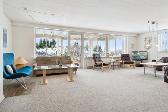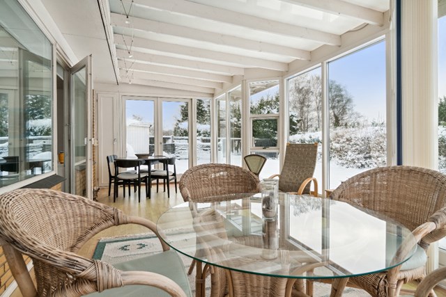 Ejendommens store vinkelstue kan rumme hele familien og i forbindelse med den store udestue er der adgang til haven.
