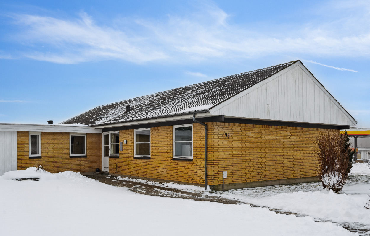 Velkommen til Bavnehøjvej 36 i Gødvad. Her skal I se en familievilla fra 1973 på hele 199 kvm. Grundstørrelsen er på 957 kvm, og haven er anlagt med terrassemiljø og græsplæne.