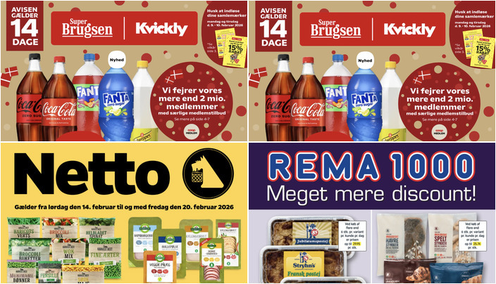 Kvickly tilbyder Coca-Cola, Fanta eller Schweppes i flere varianter til kun 11 kr. pr. flaske. Tilbuddet gælder fra fredag 6. februar til torsdag 19. februar.