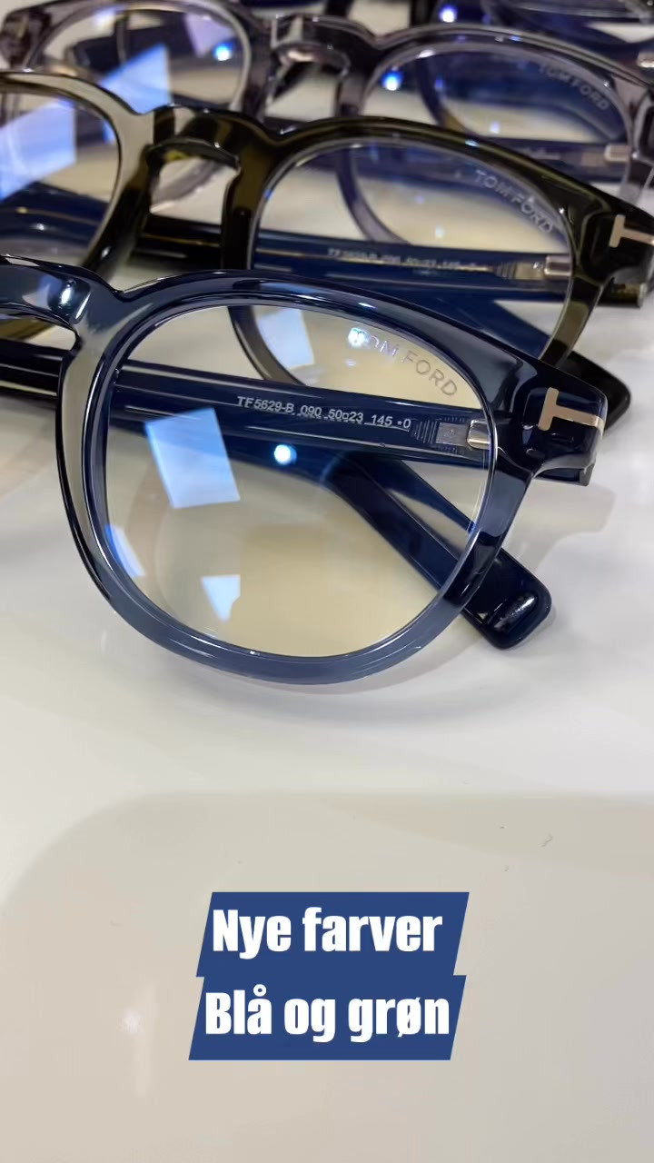 Vores populære Tom Ford herrebrille er kommet i 2 nye farver Shiny Blue og shiny dark green. Du kan finde alle 5 farver på hylderne i dag