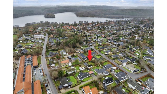 Grunden er 820 m2. stor og ligger tilbagetrukket fra vejen. Der er gåafstand til skole og indkøb.