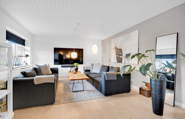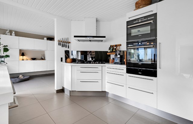 Køkken, bryggers, toilet og badeværelser er fra Invita, og hver og én af de 180 m² tager sig virkelig godt ud. Her er det let at føle sig hjemme.