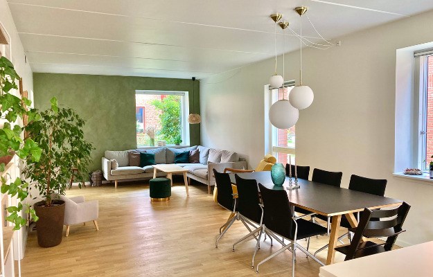 Inddel gerne din bolig i små forskellige zoner eller oaser for at skabe en hyggelig stemning, så rummet ikke virker bart eller ufærdigt. Tænk over, at det ikke handler om at proppe en masse ind i de forskellige hjørner af fx køkkenalrummet eller om at opsætte flere vægge eller rumdelere.